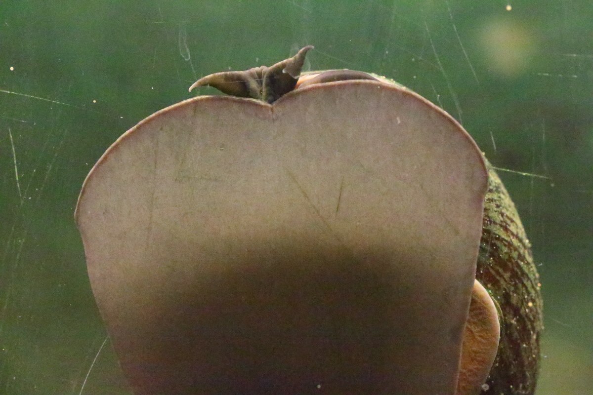 Heute hat eine von ihnen Eier gelegt. Wie bei anderen Apfelschnecken befindet sich das Gelege