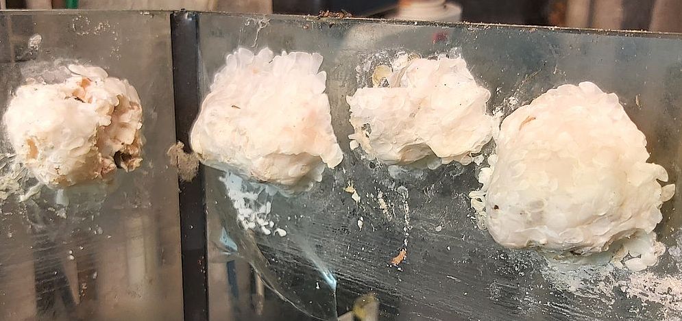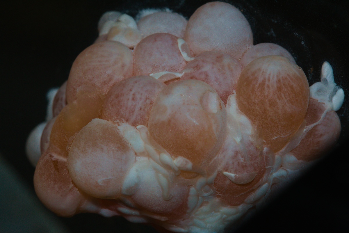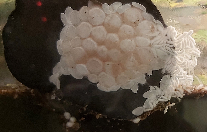 Aktuell laicht eine Schnecke gerade ab - siehe Foto.