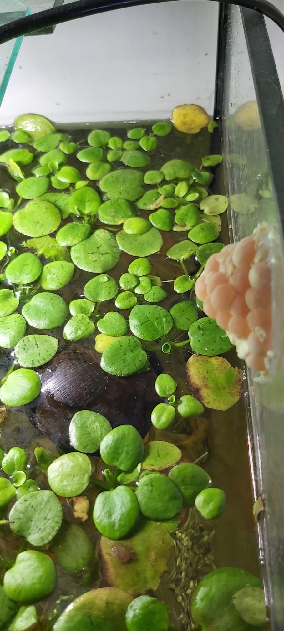 Es gibt inzwischen sehr viele Gelege immer oberhalb der Wasseroberfläche, aber keine daraus geschlüpfte Schnecke.
