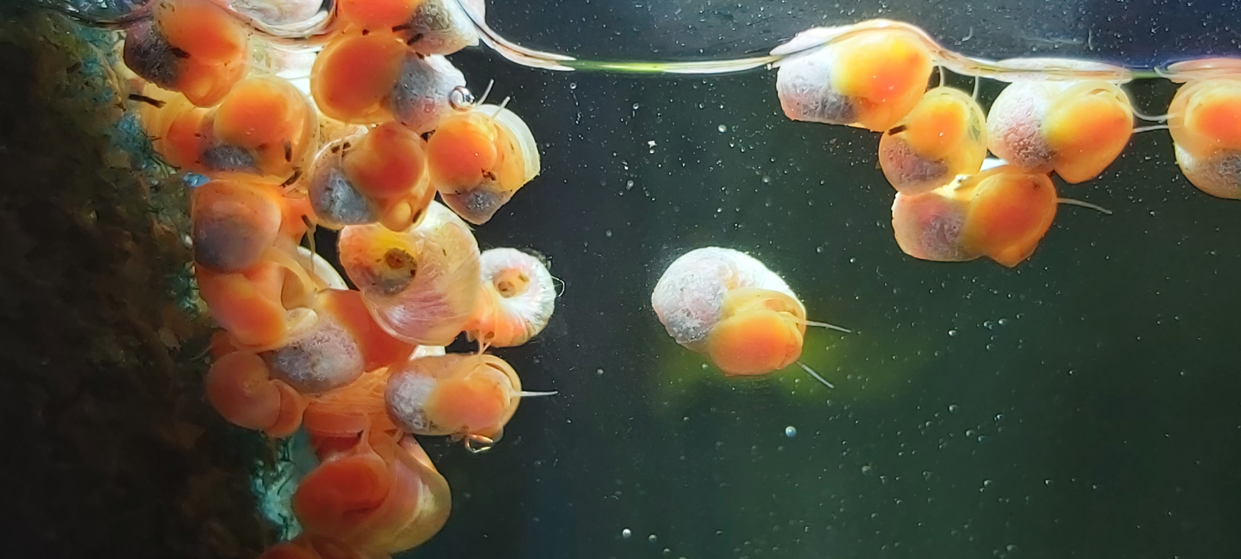 Das war mehr als erfolgreich! Nach ein paar Wochen waren unerwartet massenweise kleine, rote Schnecken in dem Aquarium.