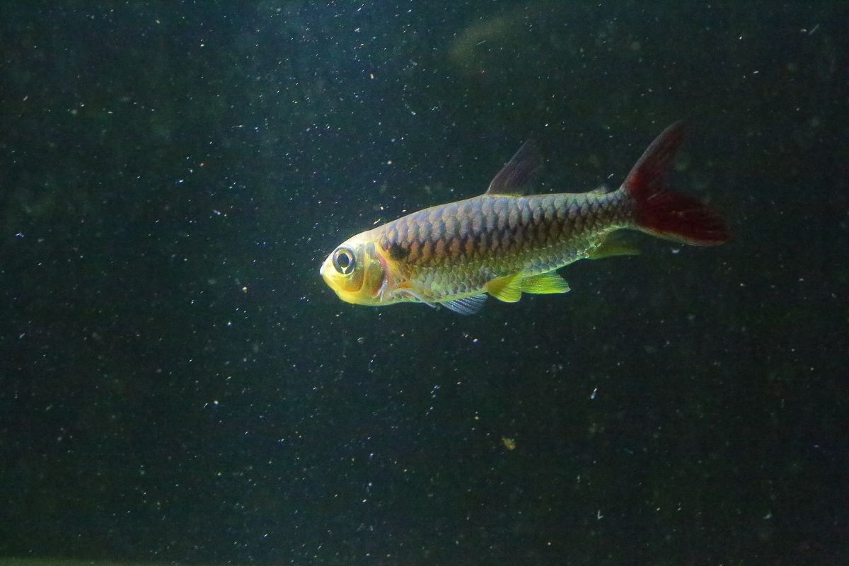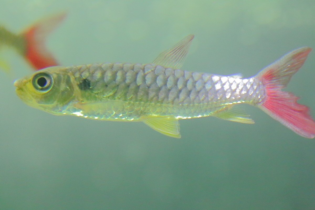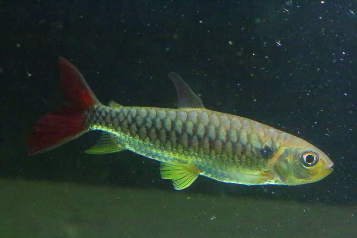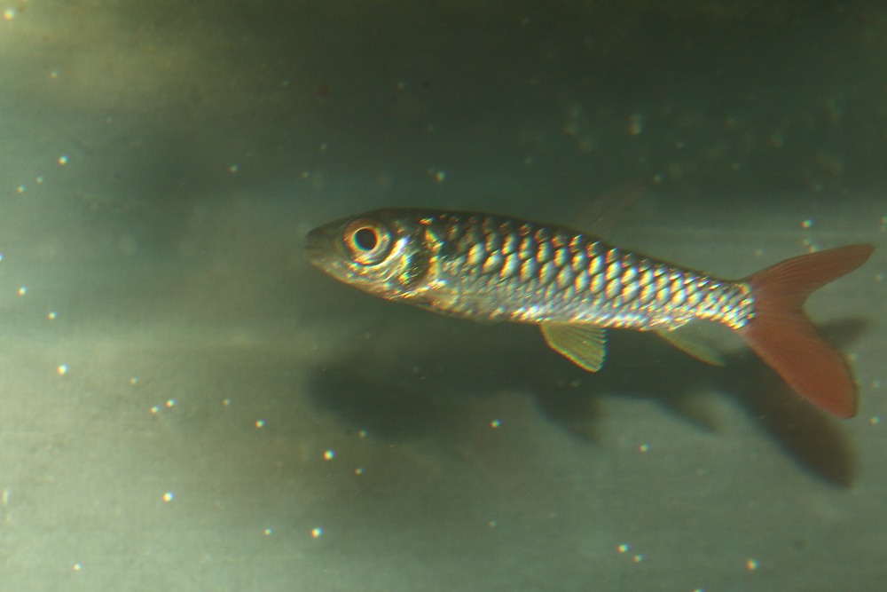 Plötzen und hatten dunkelrote Schwanzflossen und deutlich umrandete Schuppen.