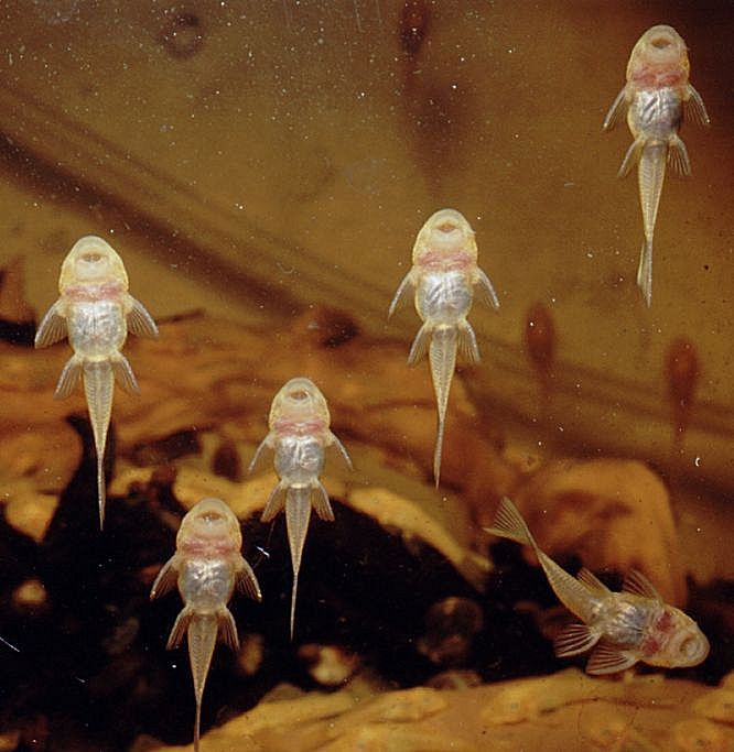Albino-Ancistren als L 144 als Jungtiere angeboten bekam, bei denen die roten Augen
