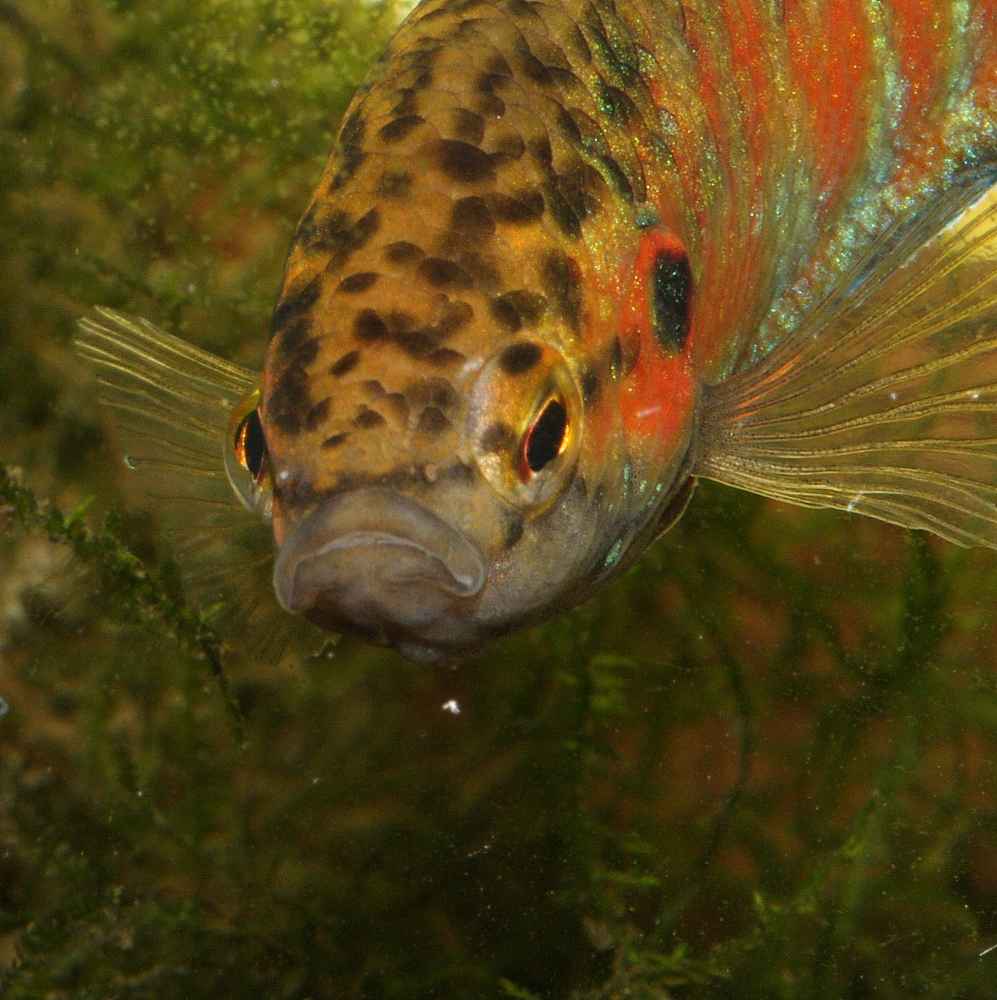 Das Makropodenmännchen ist inzwischen sehr zutraulich und beschnuppert ab und