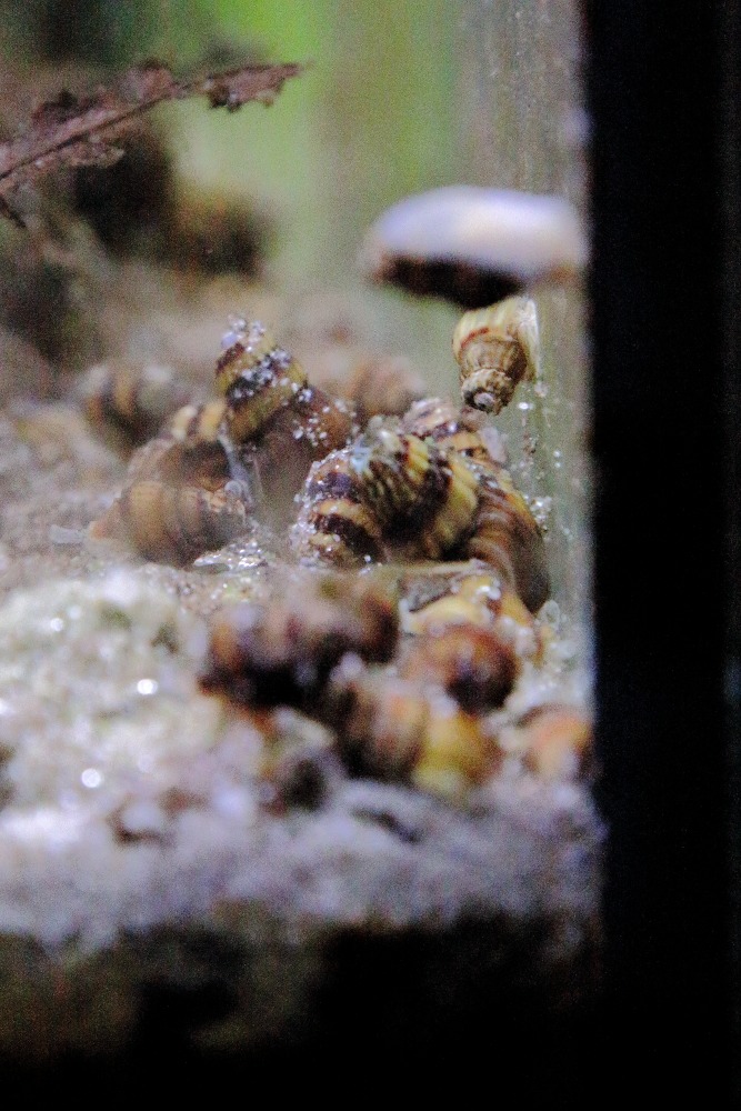 schwarz, braun oder marmoriert gefärbt, eine Schneckenart, die sich relativ häufig vermehrt.