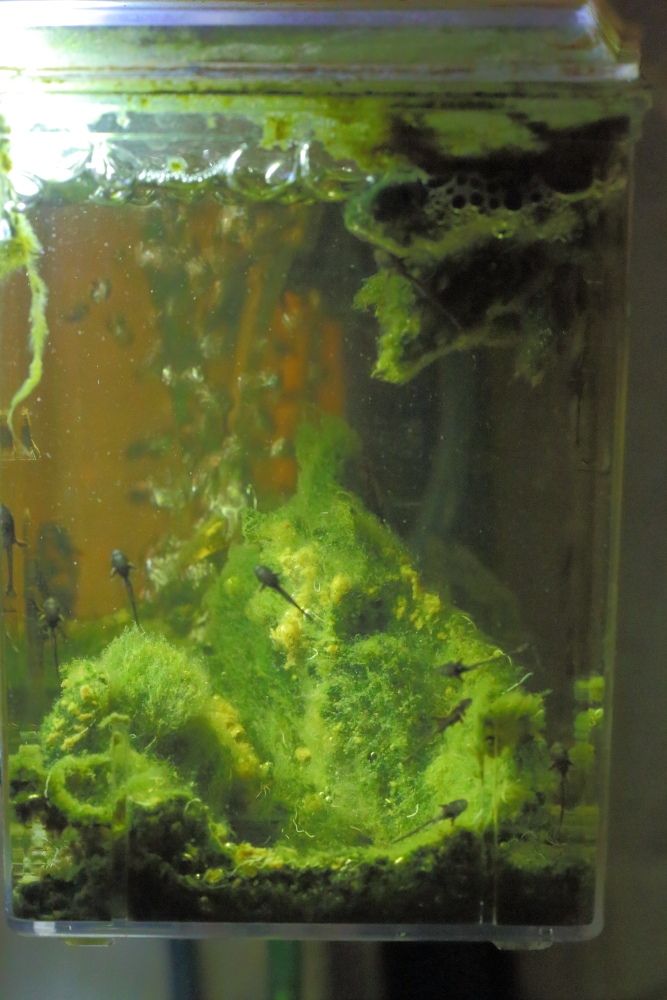 aber nach kurzer Zeit ein Algenrasen, der im Laufe der nächsten Zeit auch die Wände hoch wächst. Zusätzlich zu den anfänglichen Chlorellagaben, bekommen die